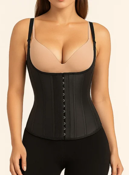 25-Steel Bone Waist Trainer – Adjustable Latex Corset with Shoulder Straps